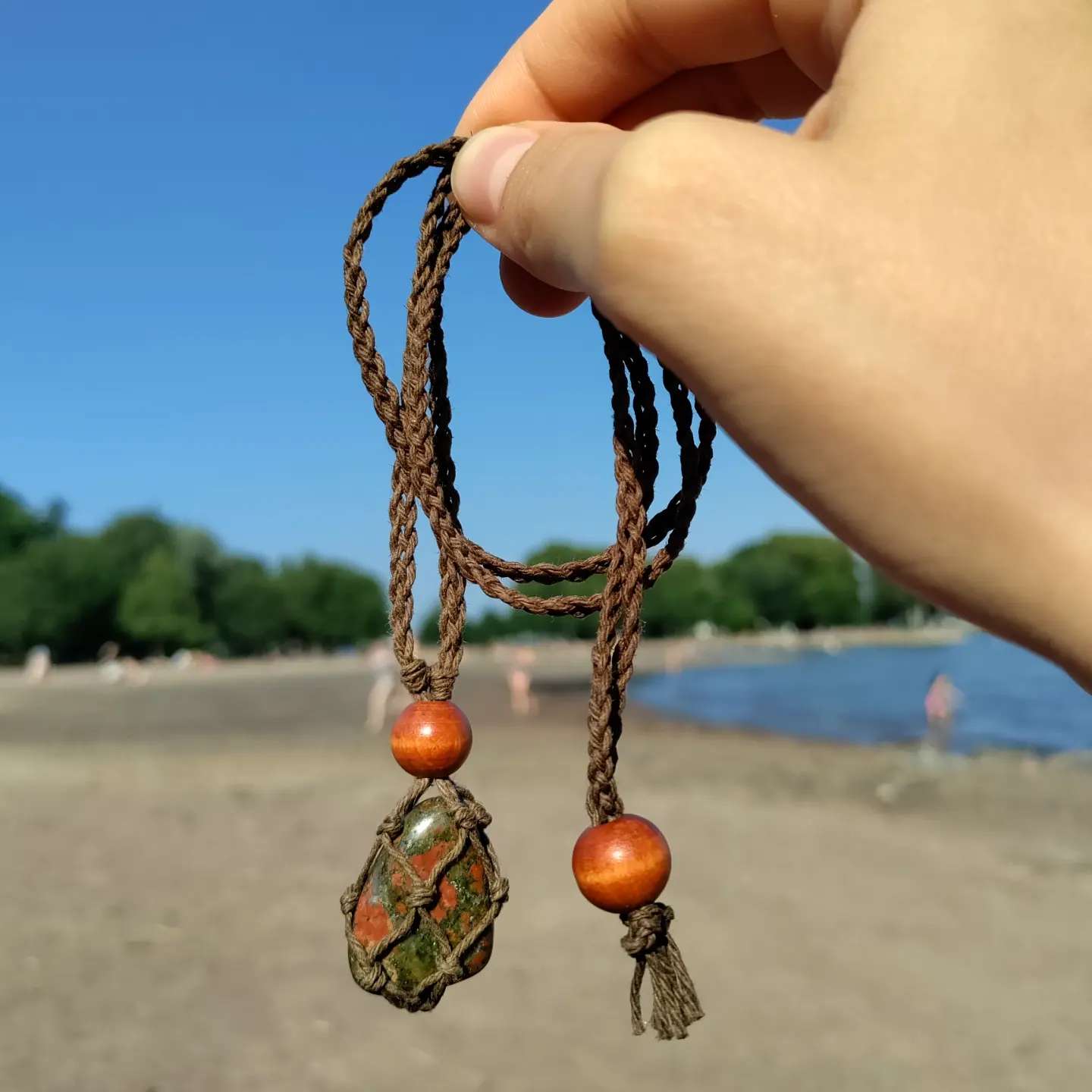 Käsintehty kustom-kaulakoru valitsemallasi kivellä, narulla ja puuhelmillä. Kiveä pystyy vaihtamaan koruun puuhelmeä siirtämällä!